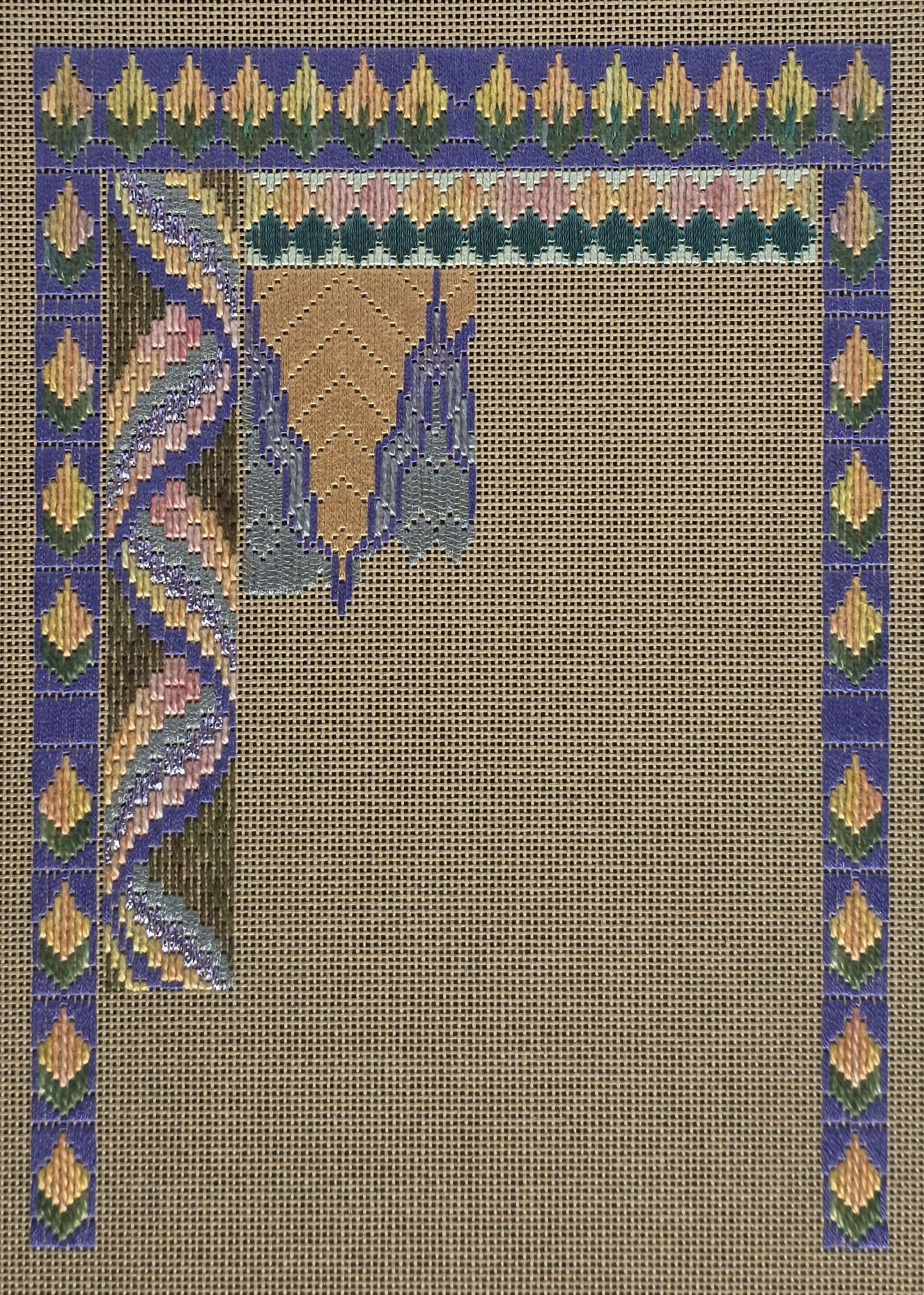 The only change I made with this project is a change of threads and canvas colors. Carole used reds and blues mainly for her Glitzy Stitching Accessories and I am rather partial to colors like coppers, gold and blue/greens, so when I went shopping I checked to see what was available in those colors.